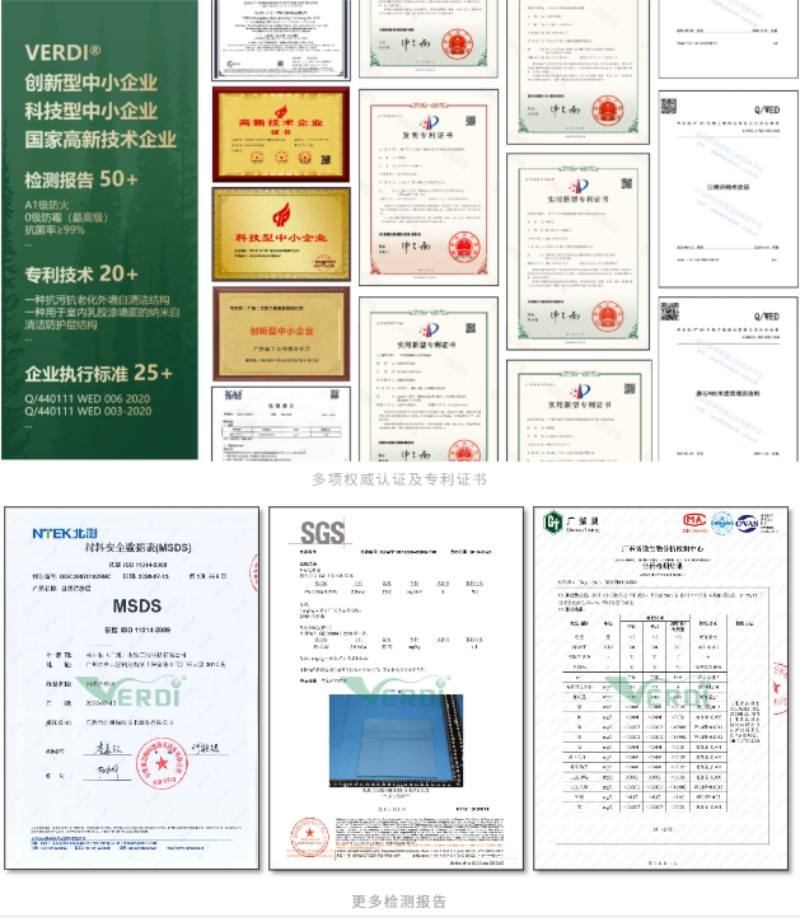 除上述卓越性能外,VERDI®不断加强专利和技术创新工作,不断取得新的突破,现已具备多项权威认证、专利证书、检测报告等,确保每一处细节都经得起考验。