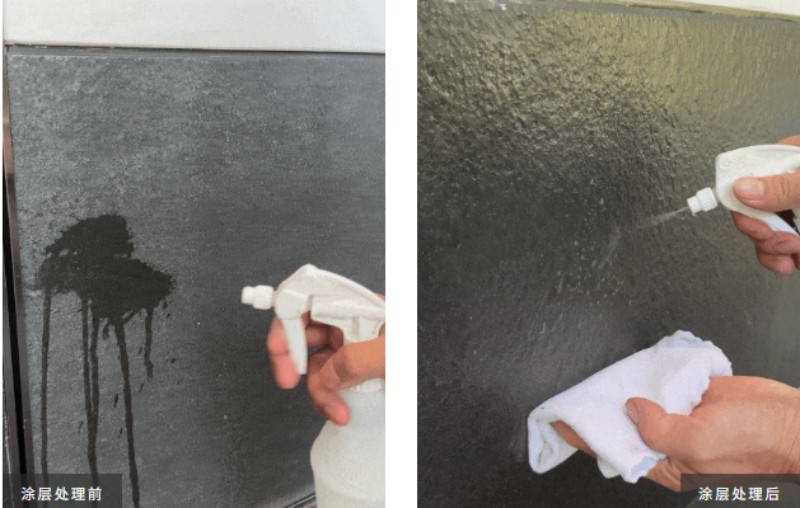 涂覆在各种建筑饰面上,能与物体表面材料的原子或离子快速反应结合,形成具有多重防护性能的致密透明保护膜;